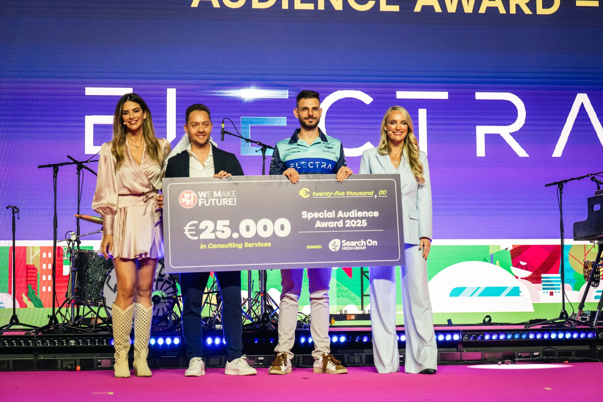 Boston, MA (United States) June 9, 2025 – Electra, the Boston-based company leader in AI-driven battery intelligence, has been awarded the Audience Prize at WMF We Make Future 2025, Italy’s largest innovation and technology festival. Selected as one of six international finalists from thousands of applicants, Electra presented on the event’s Mainstage in front of more than 5,000 attendees and a global audience from over 90 countries.